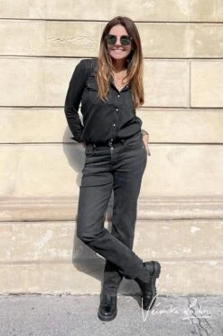 LE TEMPS DES CERISES COLLAB @YASMINE.ZEROC Amour 400/18 Mom Taille Haute 7/8ème Jeans Noir N°1