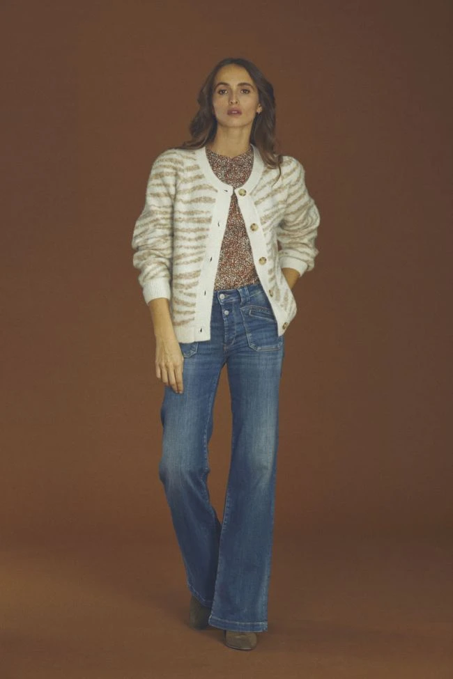 Le Flare, jeans féminin par excellence, s’allie à l’effet pulp. Jeans iconique qui fait de belles-fesses. Le Pulp Flare taille haute et son effet repulpant subliment les fesses et sculptent le fessier grâce aux pinces latérales, aux arrondis sous la ceinture et aux poches idéalement placées. La taille haute est l’allié parfait pour gainer le ventre et allonger la ligne. Ses jambes sont évasées à partir du bas des cuisses pour affiner les jambes, élancer la silhouette et donner une allure flatteuse.