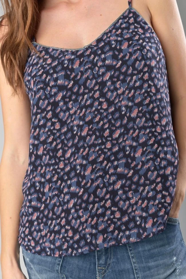 Ce caraco Vega vous donnera un look casual féminin avec son motif animalier dans les tons de rose et bleu ainsi que son liseré argenté au niveau de l’encolure à l’avant et à l’arrière. Pour plus de confort, ses fines bretelles sont réglables et une doublure agréable limite la transparence.