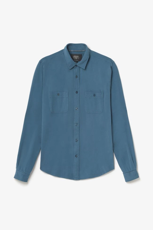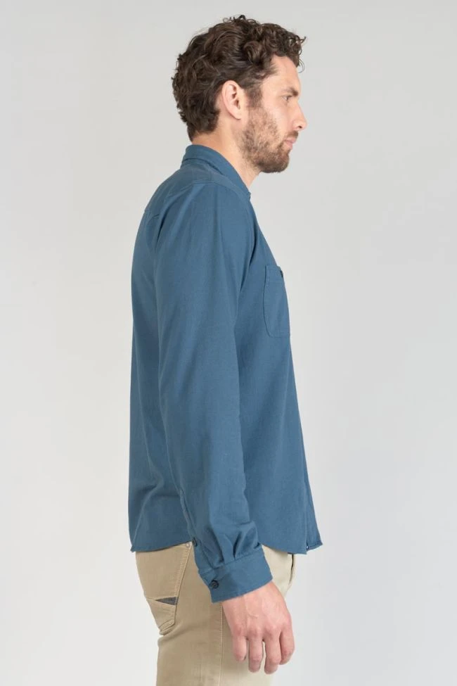 Cette chemise Adol est agréable à porter avec son jersey doux et léger, mais également tendance avec sa couleur bleu pétrole et ses deux poches carrées boutonnées au niveau de la poitrine. Pour le détail, des boutons nacrés bleus et des poignets aux revers avec liseré personnalisé « Le Temps des Cerises ».