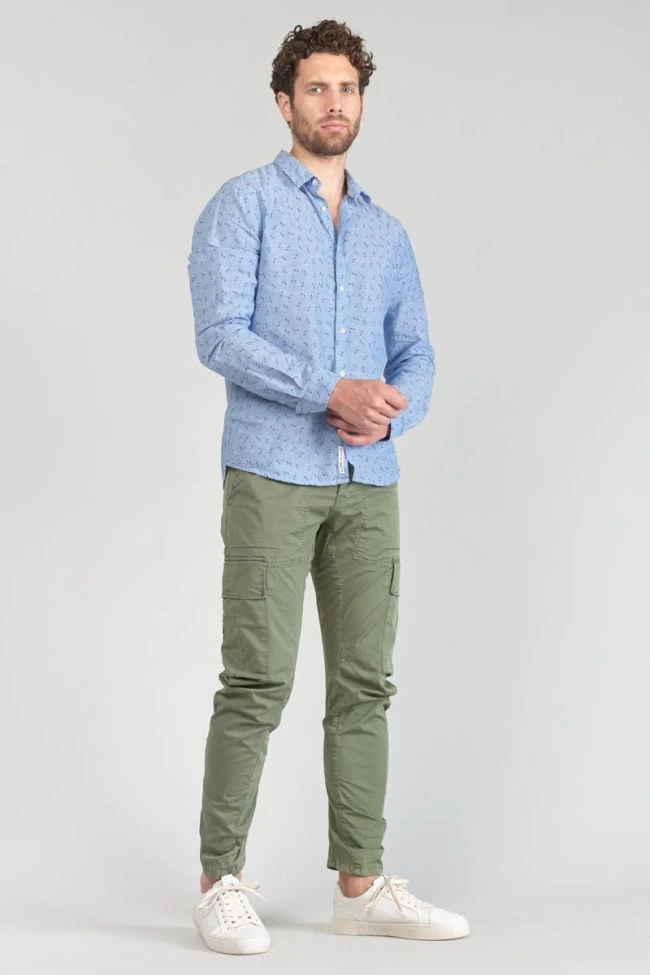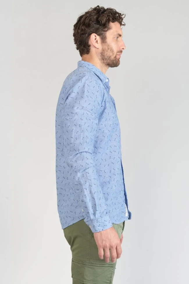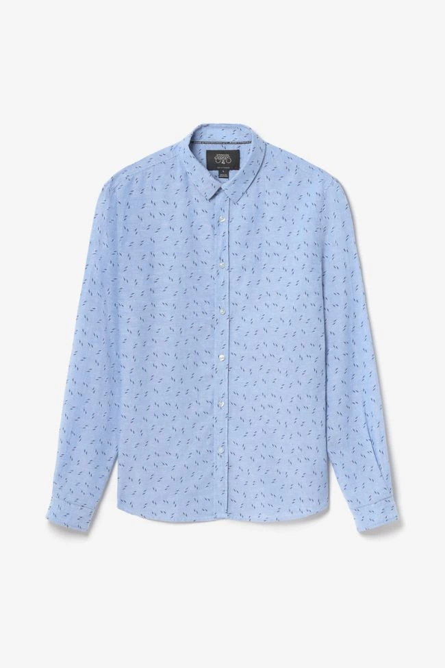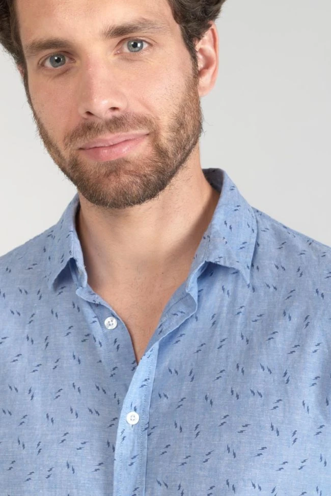 Cette chemise Arpe vous donnera un look tendance avec son tissu en lin mélangé et son motif avec de petits éclairs bleu foncé. Pour le détail, des boutons nacrés blancs, des poignets aux revers avec liseré personnalisé « Le Temps des Cerises » et un mini liseré drapeau bleu, blanc, rouge dans le dos.