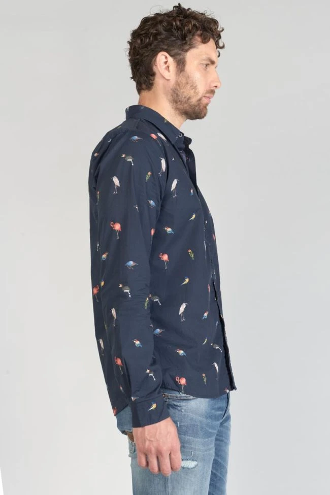 Cette chemise Birdy apportera une touche tendance à toutes vos tenues avec son motif oiseaux multicolores. Pour le détail, des boutons nacrés bleus, des poignets aux revers avec liseré personnalisé « Le Temps des Cerises » et un mini liseré drapeau bleu, blanc, rouge dans le dos.