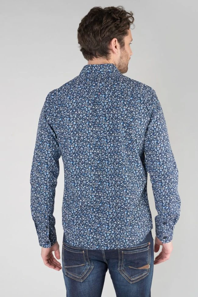 Cette chemise Nobel bleu marine vous donnera un look raffiné et élégant avec son motif fleuri bleu et blanc, ses boutons nacrés bleus et ses revers aux poignets avec liseré personnalisé « Le Temps des Cerises » et empiècement contrastant. Pour le détail final, un mini liseré drapeau bleu, blanc, rouge dans le dos.