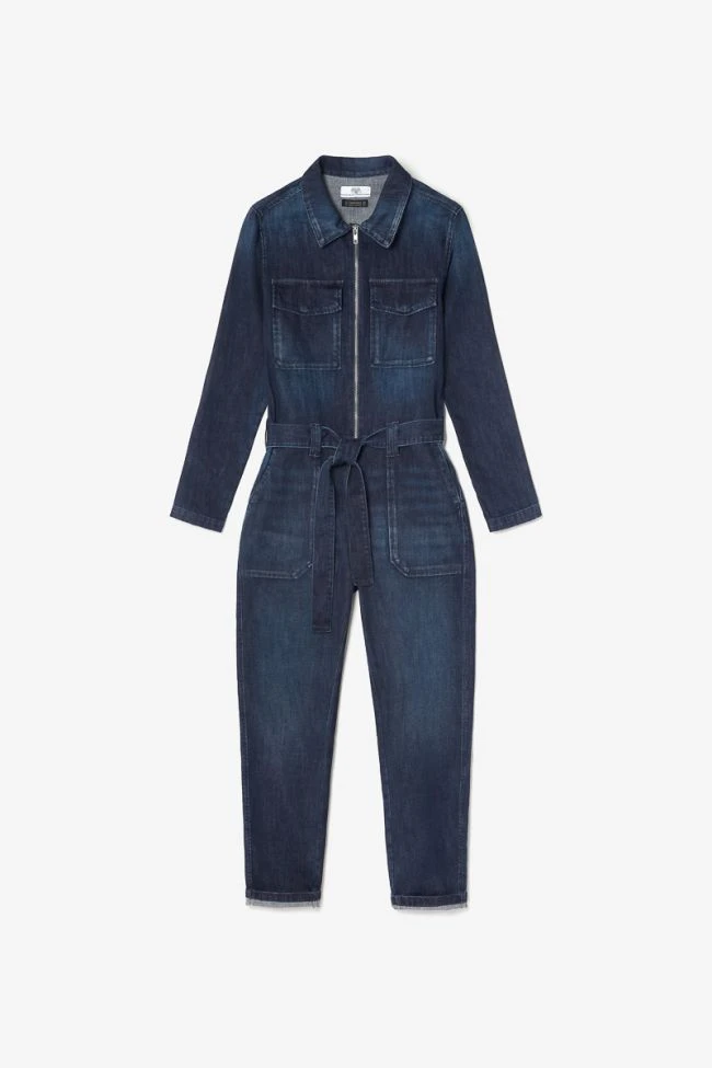 Cette combinaison vous donnera un look casual tendance avec sa coupe loose longue, ses grandes poches plaquées à l’avant, ses deux poches poitrine à rabat ainsi que sa fermeture zippée argentée en guise de fermeture. Pour plus de confort, une ceinture amovible en jeans complète la pièce.