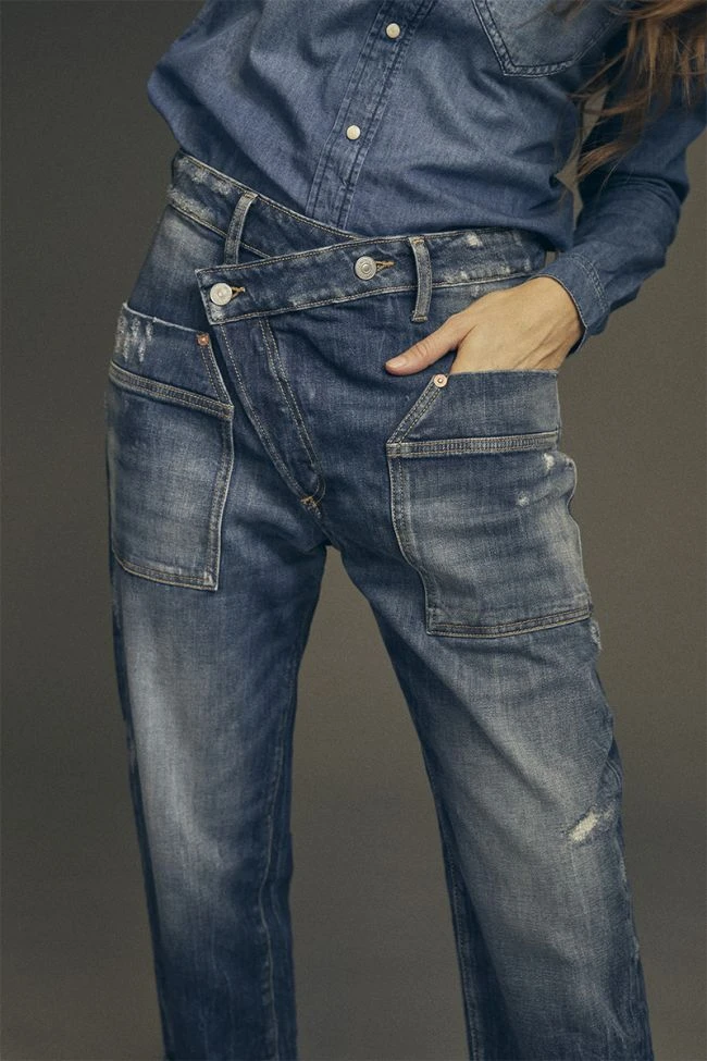LE TEMPS DES CERISES Cosy Pocket Boyfit 7/8ème Jeans Destroy Bleu N°2