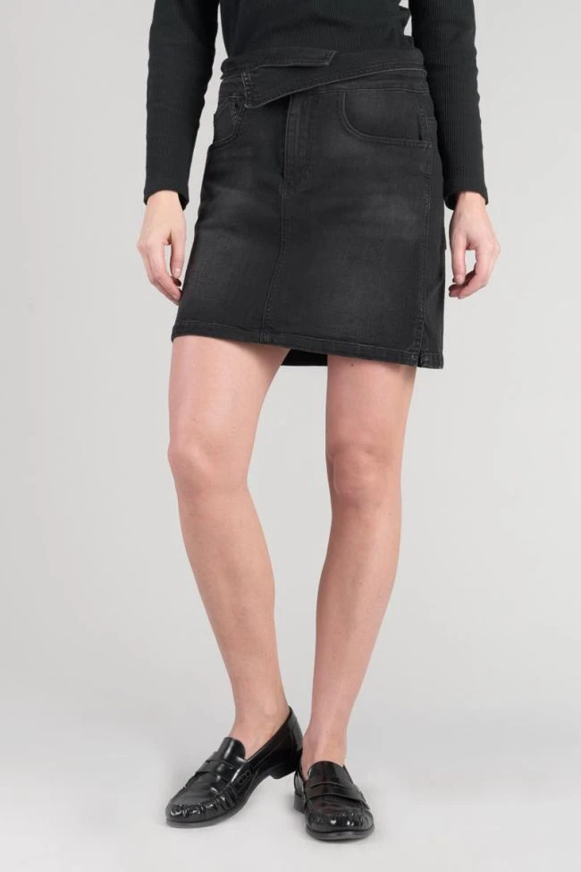 Cette jupe courte Callas est idéale pour être casual avec sa coupe droite et son jeans noir légèrement délavé tout en restant tendance grâce à sa taille habillée de revers.