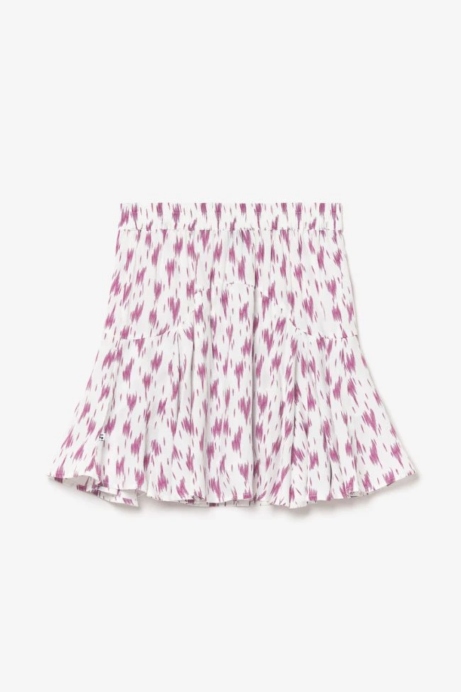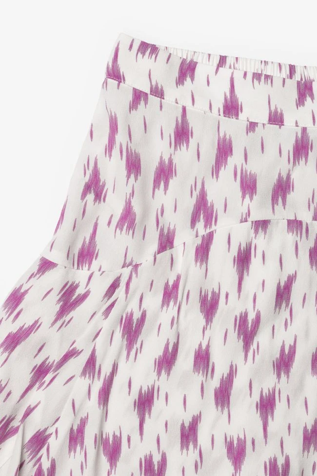 Jupe short Marligi à motif violet très girly avec taille élastiquée au dos et tissu fluide pour plus de confort.
