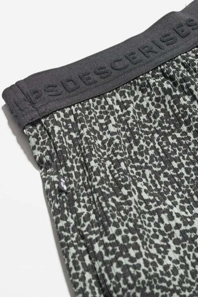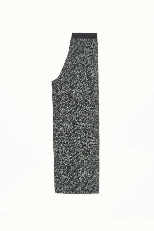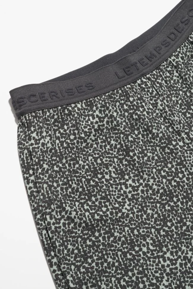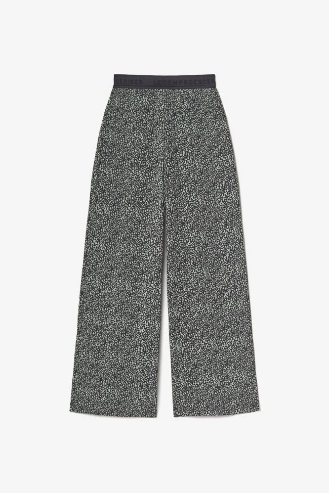 Pantalon Ghebgi tendance avec sa coupe large, son motif léopard vert et son tissu côtelé très fluide. Pour plus de style, la taille est haute et sa ceinture élastiquée est personnalisée « Le Temps des Cerises ».