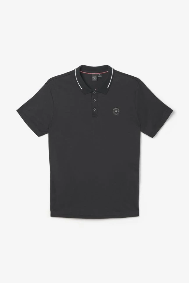 Ce polo Aron noir au toucher doux allie élégance et tendance avec ses détails comme son col avec liseré blanc et son ouverture avec liserés colorés et boutons personnalisés « Le Temps des Cerises ». Pour le détail, un écusson personnalisé « Le Temps des Cerises » sur la poitrine et un mini liseré drapeau bleu, blanc, rouge au dos au niveau du col.