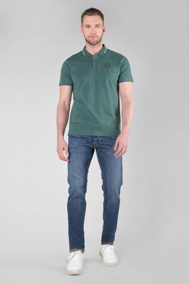 Ce polo Aron vert au toucher doux allie élégance et tendance avec ses détails comme son col avec liseré blanc et son ouverture avec liserés colorés et boutons personnalisés « Le Temps des Cerises ». Pour le détail, un écusson personnalisé « Le Temps des Cerises » sur la poitrine et un mini liseré drapeau bleu, blanc, rouge au dos au niveau du col.