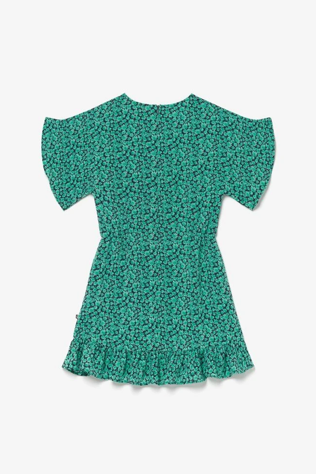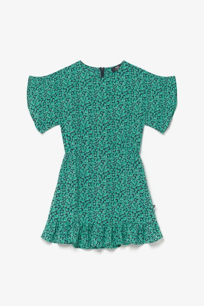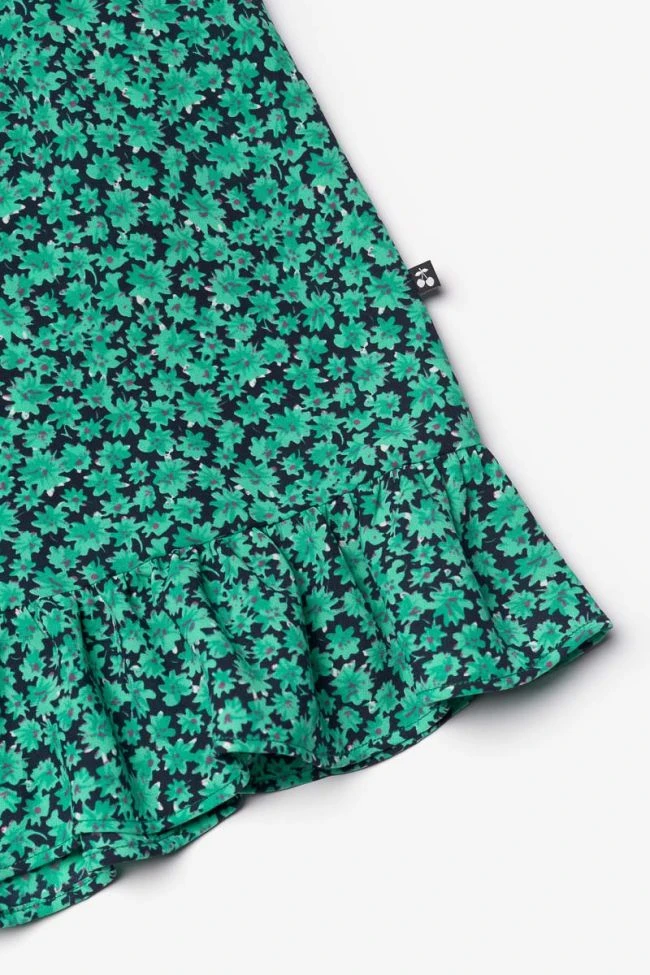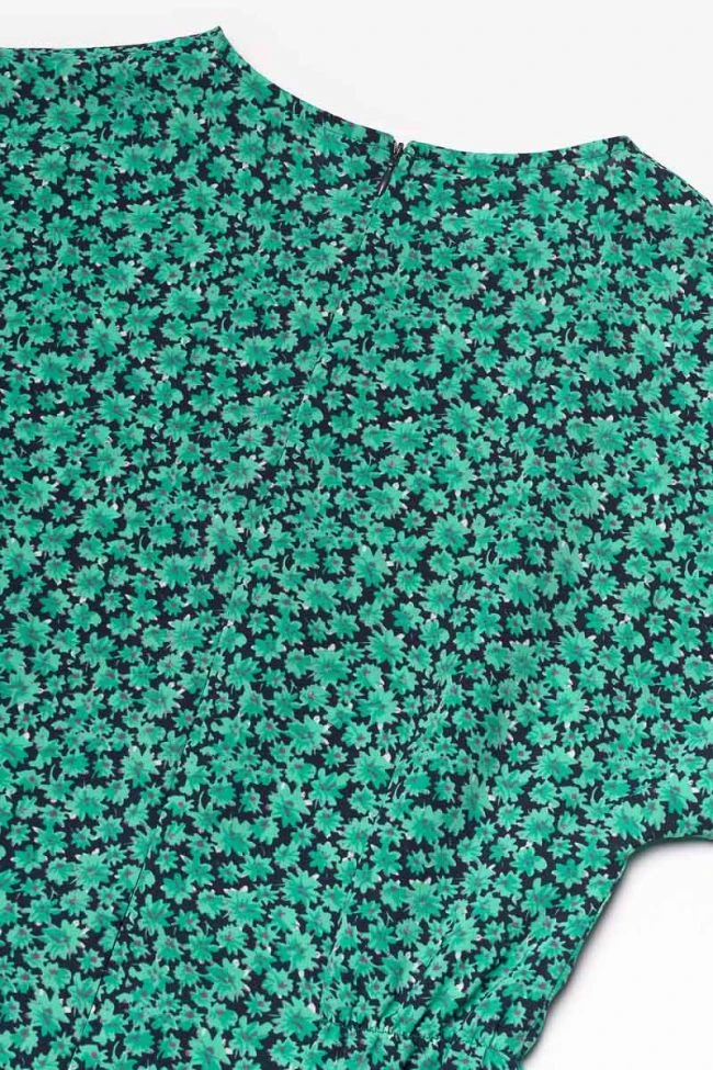 Robe Aliyagi idéale pour la saison estivale avec son tissu léger et son imprimé à motif vert et bleu marine. Sa taille élastiquée de chaque côté, ses manches larges et son volant sur le bas apportent un côté girly. Pour plus de confort, une fermeture zippée invisible au dos permet d’enfiler la robe plus facilement.