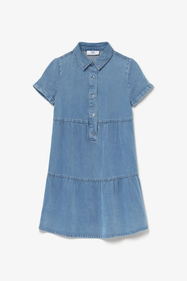 Jolie robe Sunogi idéale pour l’été avec son tencel bleu denim léger. Son col chemise avec boutons nacrés bleu en guise de fermeture apporte du style à la pièce.