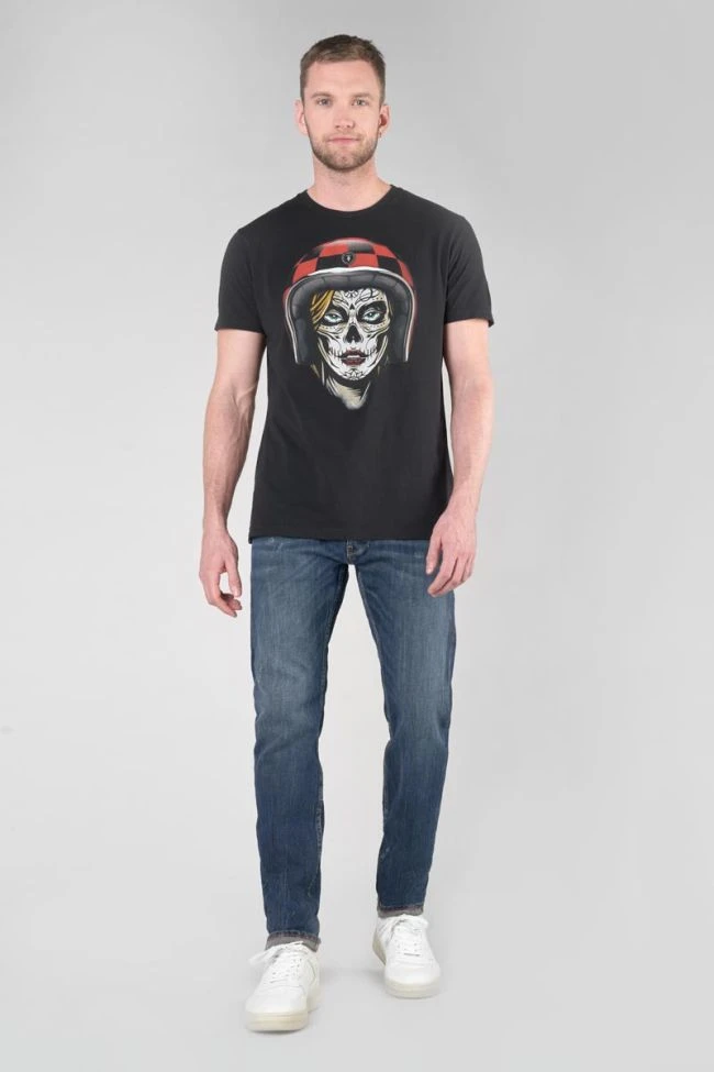 Ce t-shirt Diarov noir a un look rock avec son imprimé fantaisie et son écusson Le Temps des Cerises sur la manche gauche.