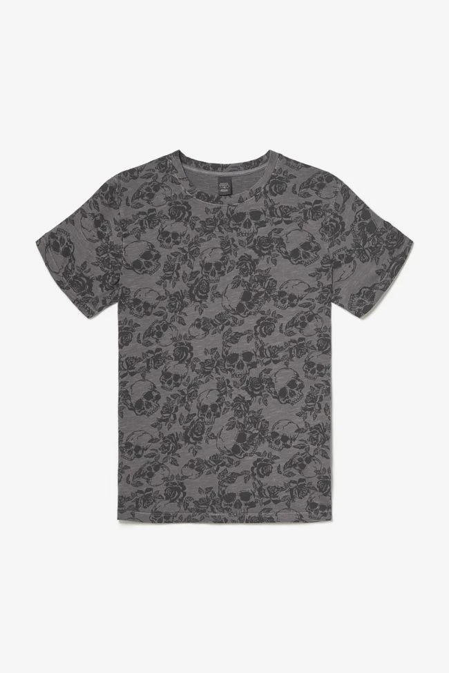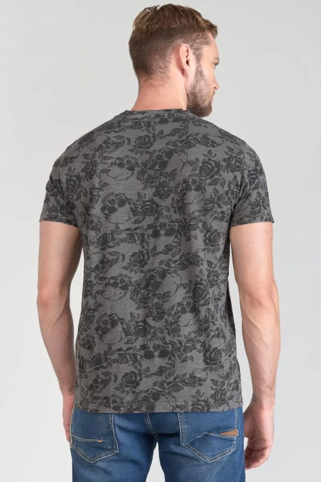 Ce t-shirt Facto a un look rock avec son motif noir mêlant têtes de mort et fleurs sur fond anthracite. Pour le détail, un écusson Le Temps des Cerises sur la manche gauche.