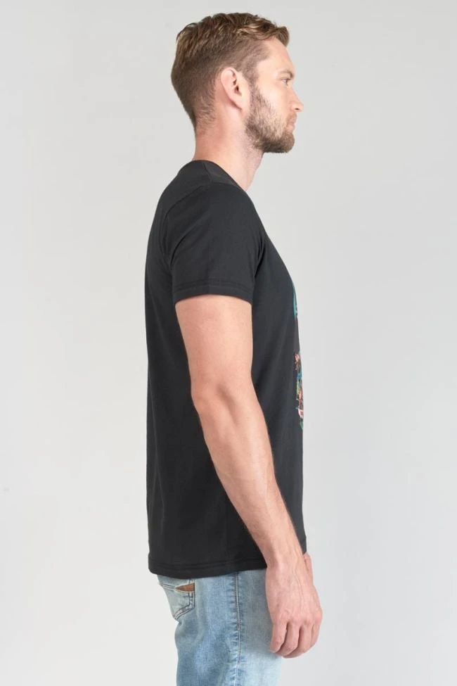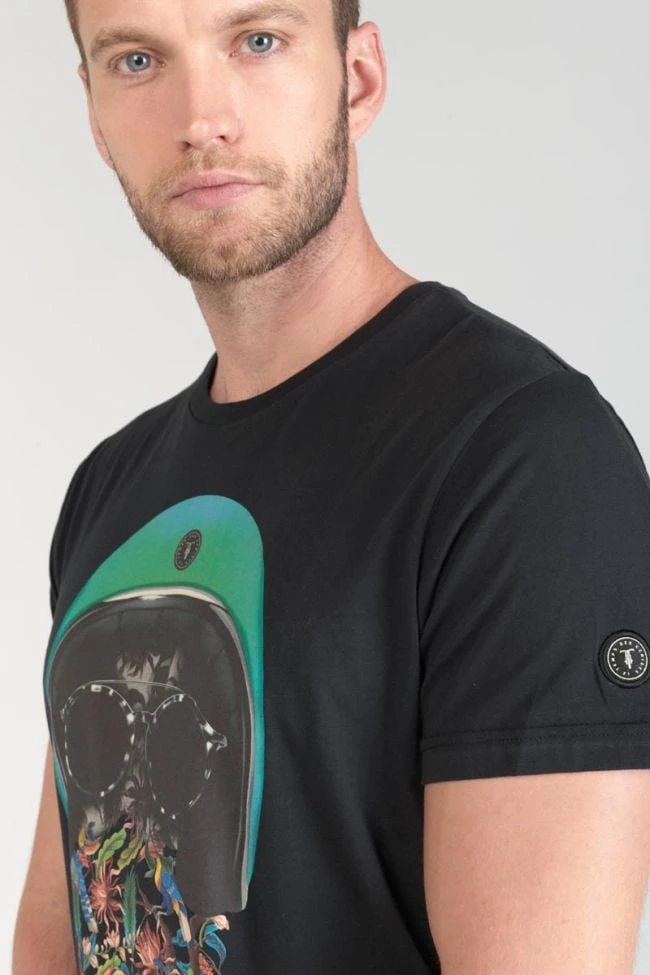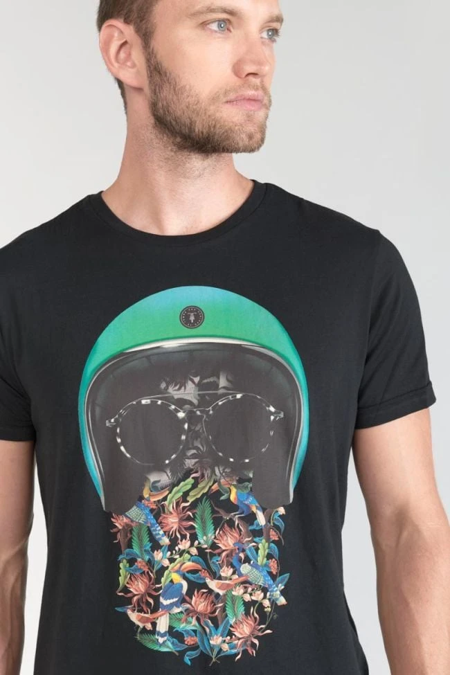 Ce t-shirt Gregor noir a un look casual avec son imprimé fantaisie tropical. Pour le détail, un écusson Le Temps des Cerises sur la manche gauche.