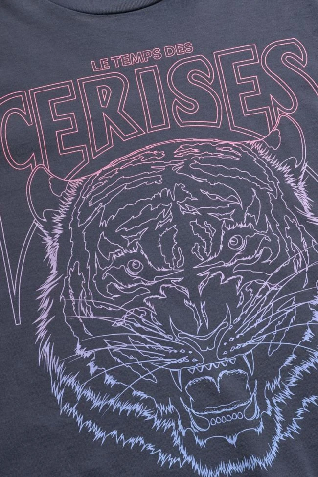 T-shirt Hoppergi au style tendance avec sa coupe loose, son tissu à l’effet délavé et son imprimé tête de tigre personnalisé Le Temps des Cerises dans un dégradé violet rose.