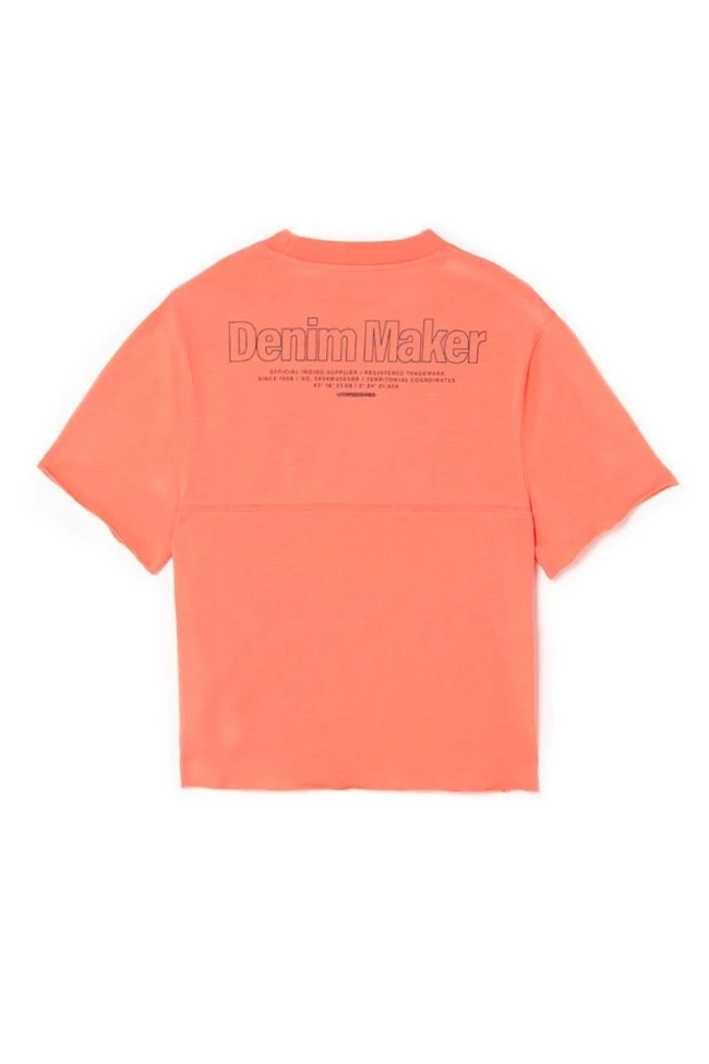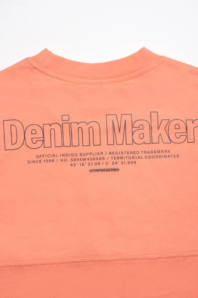 T-shirt Ikkobo très estival avec sa couleur corail et tendance avec ses bords francs roulottés, son écusson LTC au niveau de la poitrine et son imprimé noir au dos personnalisé Le Temps des Cerises.