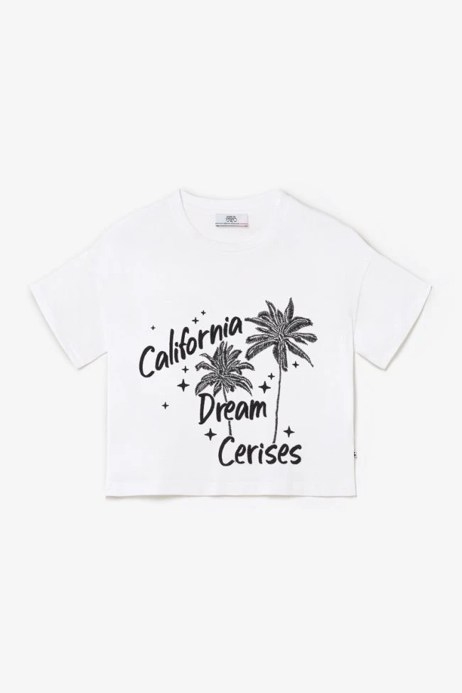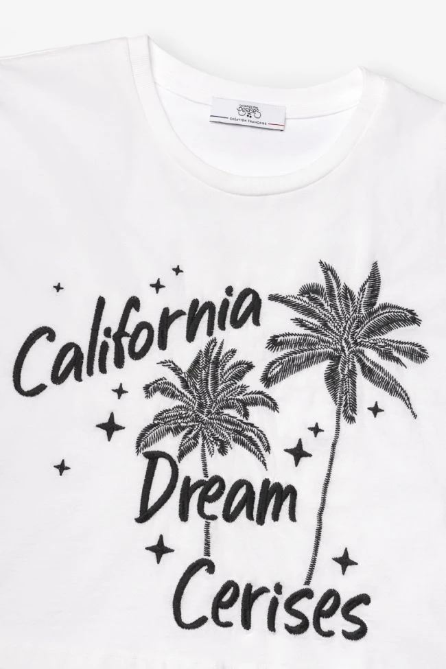 T-shirt Palmigi blanc à la coupe loose large avec des broderies noires au motif très estival pour un style tendance en été.