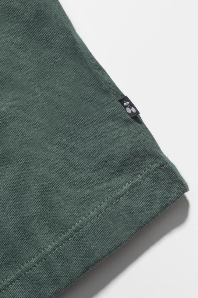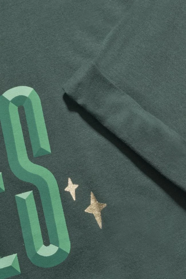 T-shirt Priahgi vert bouteille tendance et girly avec son imprimé ton sur ton Le Temps des Cerises et ses étoiles dorées. Pour plus de style, la coupe est loose et les manches sont à revers cousus.