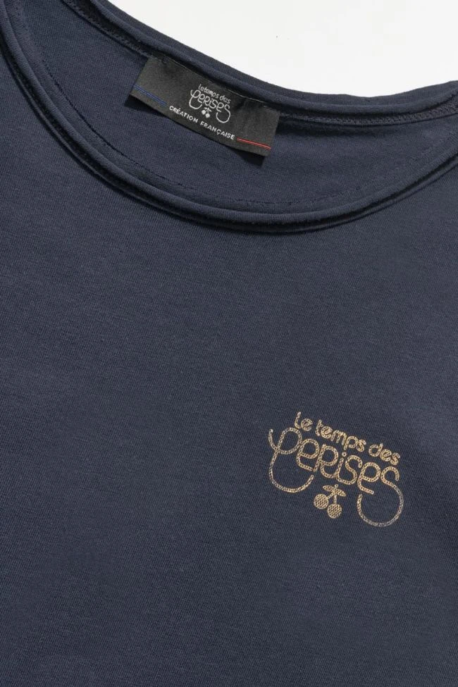 T-shirt Smalltramegi bleu nuit à avoir dans son dressing avec son logo « Le Temps des Cerises » doré, son col à bord franc et ses manches à revers cousus.