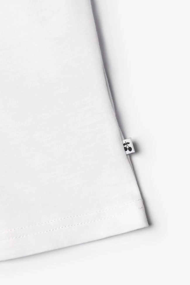 T-shirt Vinagi tendance avec sa coupe loose lĂ©gĂšrement courte et casual avec son inscription Le Temps des Cerises noire Ă l’avant.