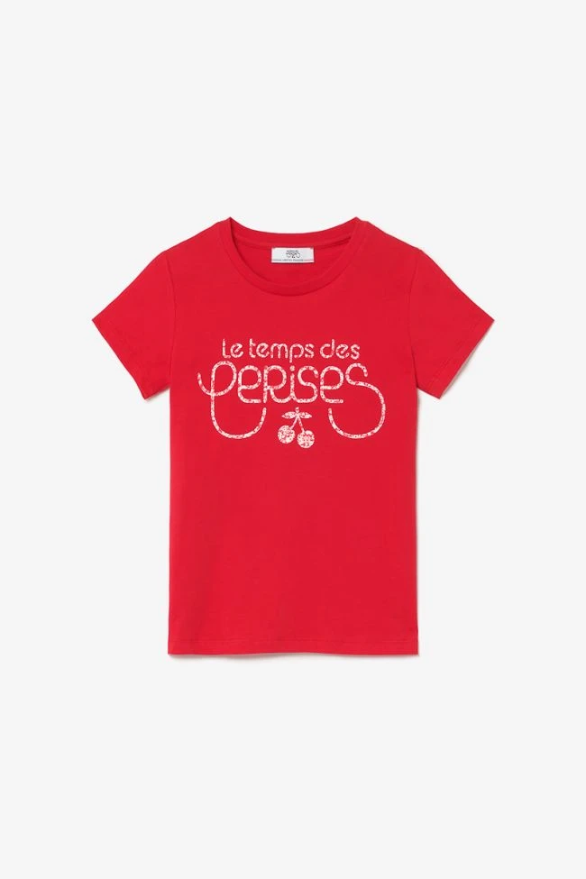 Ce t-shirt Wandagi rouge personnalisé « Le Temps des Cerises » avec un imprimé floral est une classique à avoir dans l’armoire.