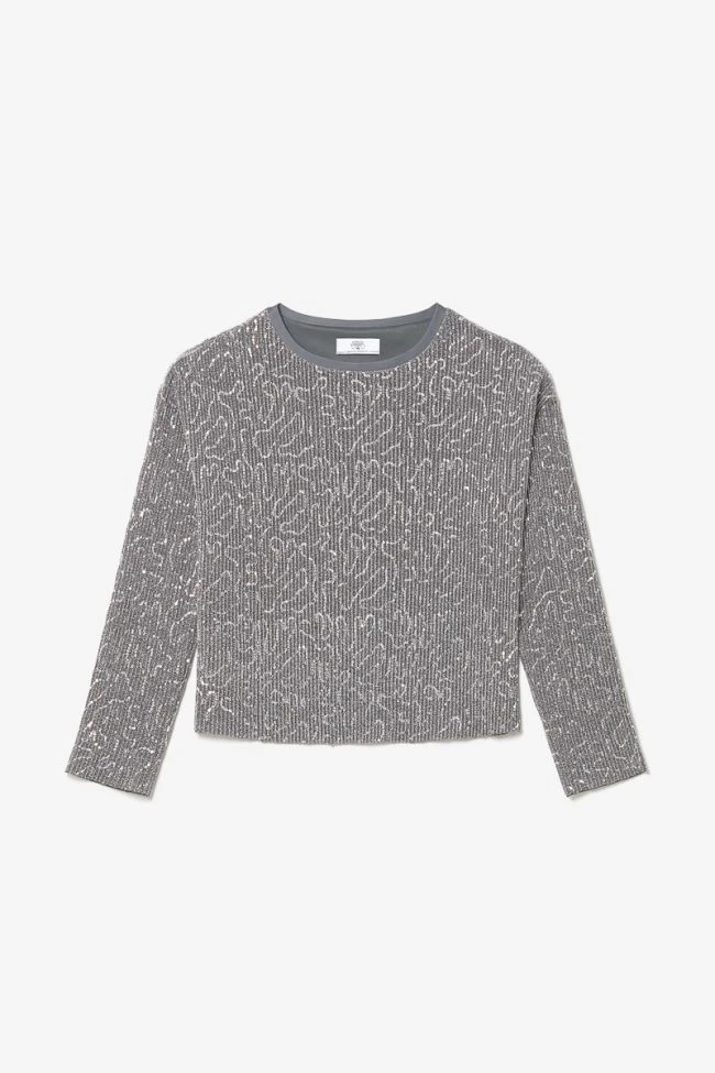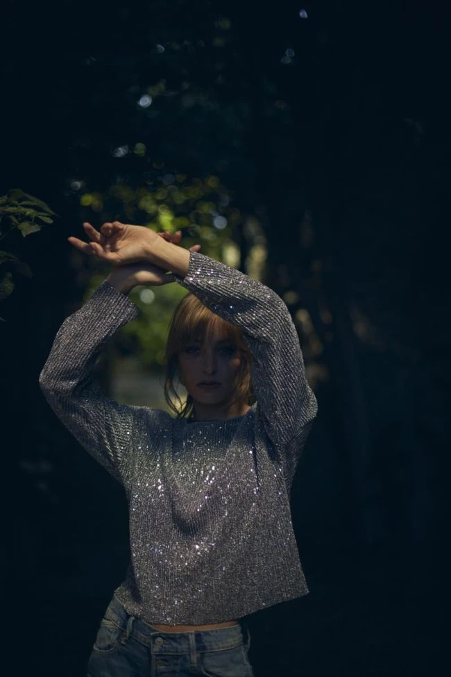 Ce top Able est parfait pour vos soirées habillées avec son tissu plissé argenté parsemé de sequins argentés pour un côté rock. Le top est doublé pour plus de confort.